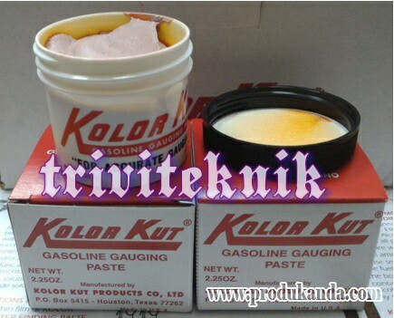 KOLOR KUT GASOLINE GAUGING PASTE/Pasta Minyak adalah sebuah produk dengan tingkat indikator paling efektif yang digunakan untuk mendeteksi ketinggian atau kadar cairan minyak/petroleum. Produk ini berwarna merah muda terang dan seketika akan berubah menjadi merah jika terjadi kontak dengan bensin, minyak diesel, naphtha, minyak tanah, minyak mentah, bahan bakar jet, dan hidrokarbon lainnya.